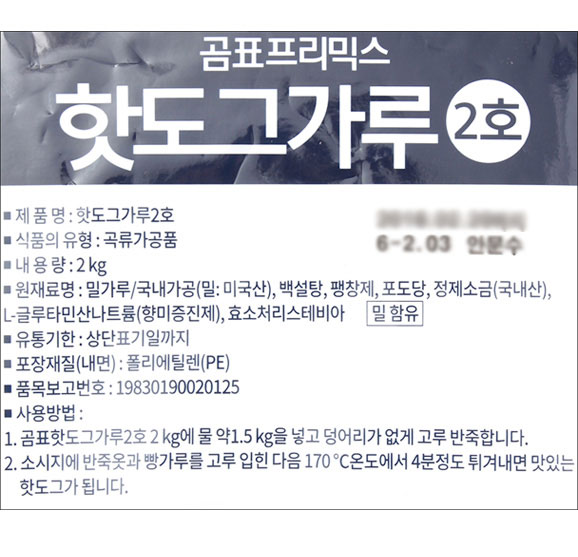 | 제조연월일, 소비기한 또는 품질유지기한 | 제조연월일로부터 12개월까지 |