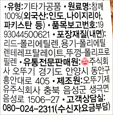 | 품명 및 모델명 | 옛날볶음참깨 |