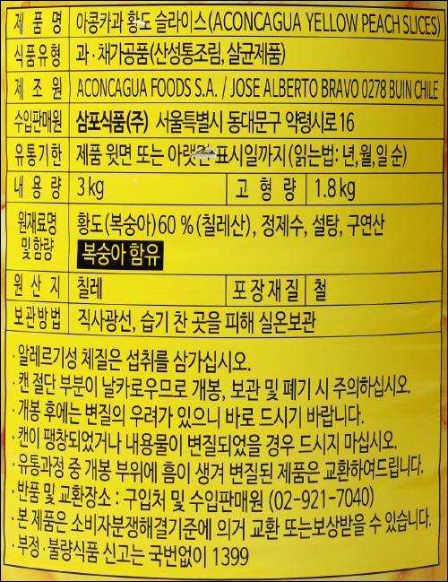 | 품명 및 모델명 | 아콩카과 황도 슬라이스 |