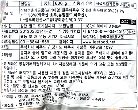 | 품명 및 모델명 | 설렁탕 |