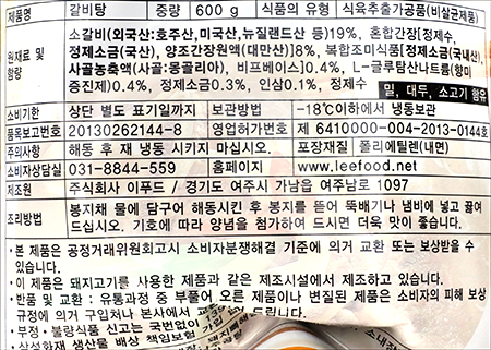 | 품명 및 모델명 | 갈비탕 |
