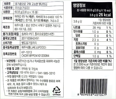 | 품명 및 모델명 | 들기름으로 구워 고소한 별난김 |