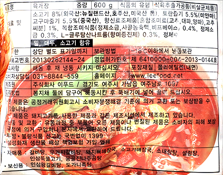 | 포장 단위별 내용물의 용량(중량), 수량, 크기 | 600g |