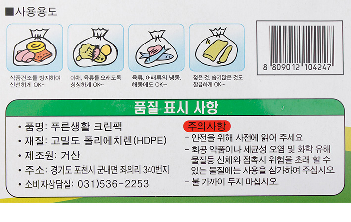 홈 > 주방용품 > 지퍼백/랩/호일/비닐장갑 > 크린백