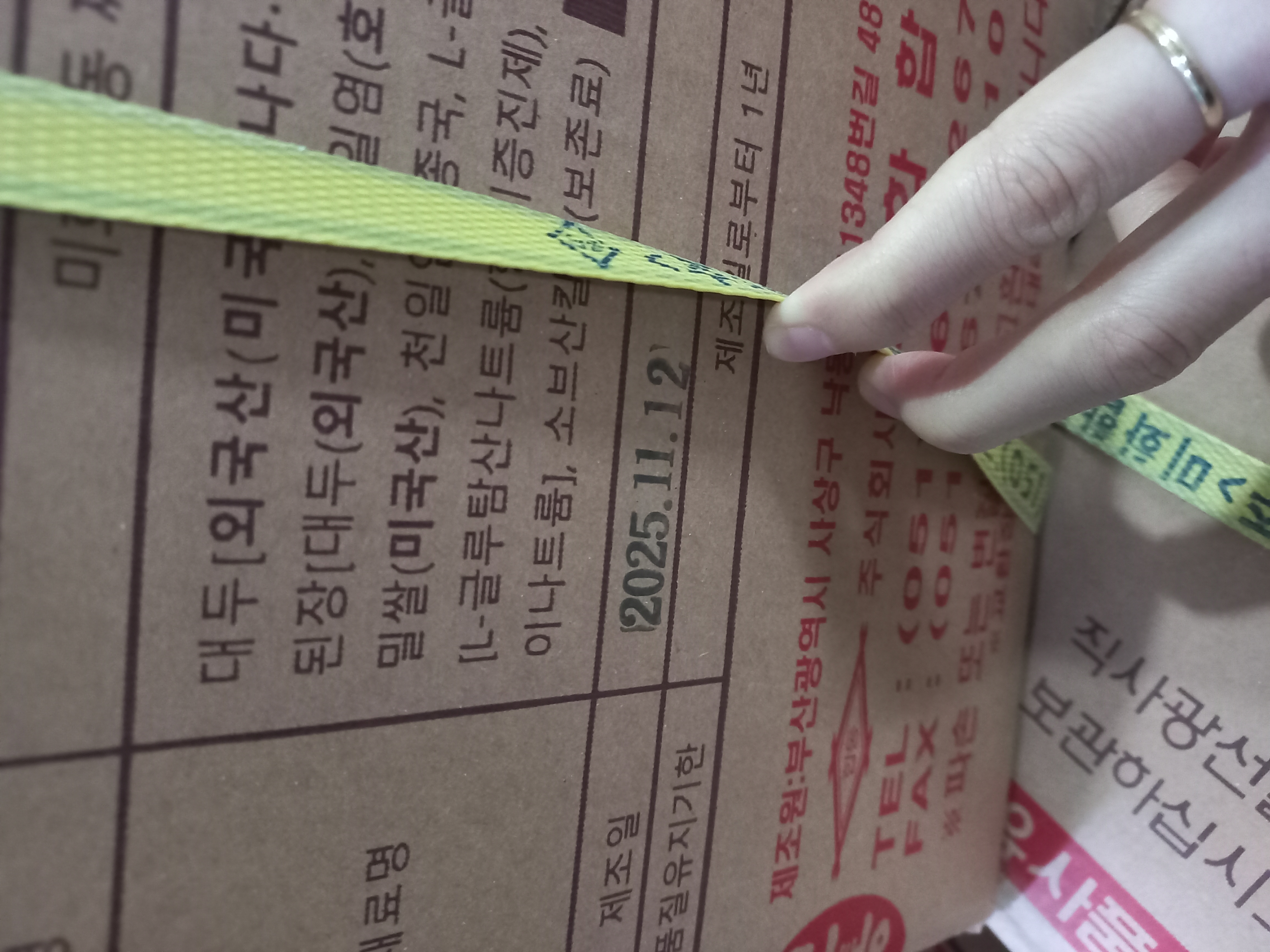 | 제조연월일, 소비기한 또는 품질유지기한 | 제조연월일로부터 12개월까지 |
