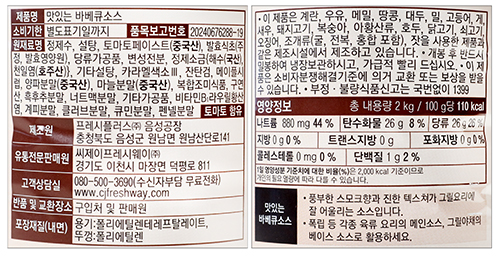 | 품명 및 모델명 | 맛있는 바베큐소스 |