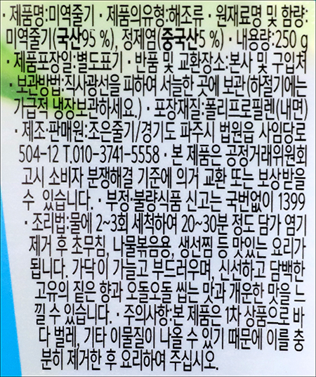 | 포장 단위별 내용물의 용량(중량), 수량, 크기 | 250g |