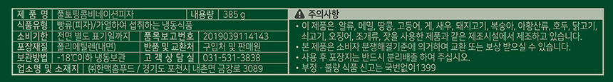 | 품명 및 모델명 | 풀토핑콤비네이션피자 |