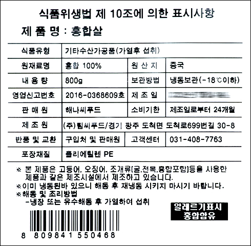 | 품명 및 모델명 | 홍합살 |