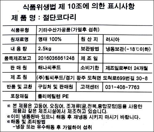 | 보관방법 또는 취급방법 | -18℃이하 냉동 보관 |
