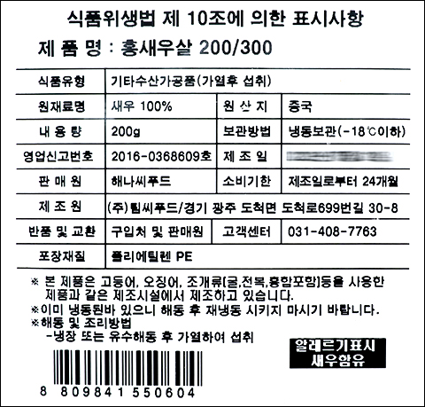 | 품명 및 모델명 | 홍새우살 200 / 300 |