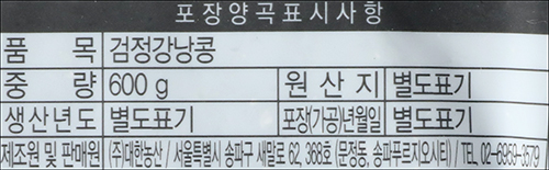 | 품명 및 모델명 | 검정강낭콩 |