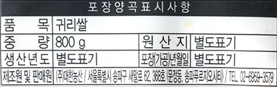 | 품명 및 모델명 | 귀리쌀 |