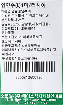 | 품명 및 모델명 | 냉동 임연수어 |