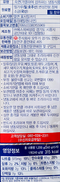 | 제조연월일, 소비기한 또는 품질유지기한 | 제조연월일로부터 9개월까지 |