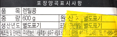 품명 및 모델명 렌틸콩