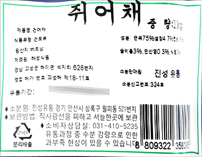 포장 단위별 내용물의 용량(중량), 수량, 크기 1kg