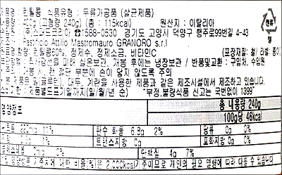 | 제조연월일, 소비기한 또는 품질유지기한 | 제조연월일로부터 36개월까지 |