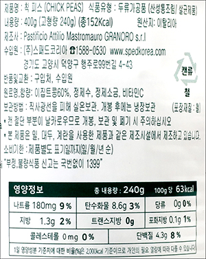 | 포장 단위별 내용물의 용량(중량), 수량, 크기 | 400g |