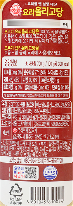 | 포장 단위별 내용물의 용량(중량), 수량, 크기 | 700g |