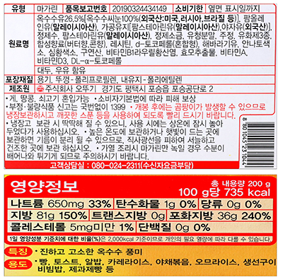| 포장 단위별 내용물의 용량(중량), 수량, 크기 | 200g |