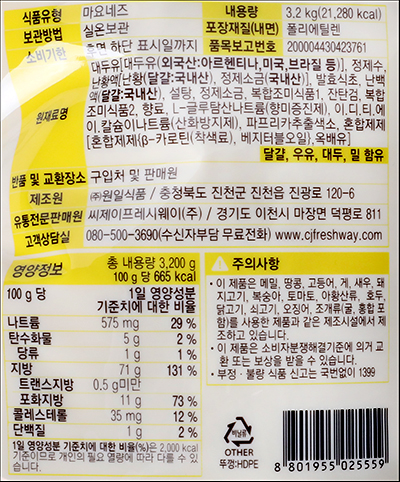 | 포장 단위별 내용물의 용량(중량), 수량, 크기 | 3.2kg |