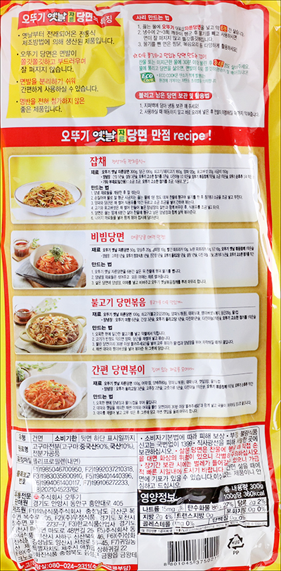 | 품명 및 모델명 | 오뚜기 옛날 자른당면 |