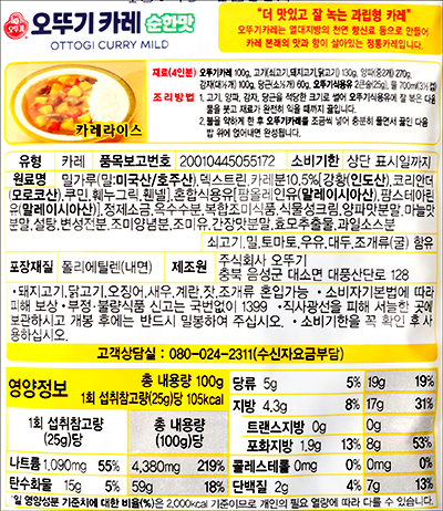 포장 단위별 내용물의 용량(중량), 수량, 크기 100g