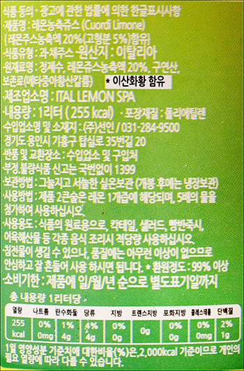 | 품명 및 모델명 | 레몬농축쥬스 |