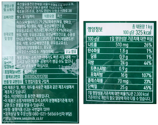 | 품명 및 모델명 | 트리플 슈레드 치즈 |