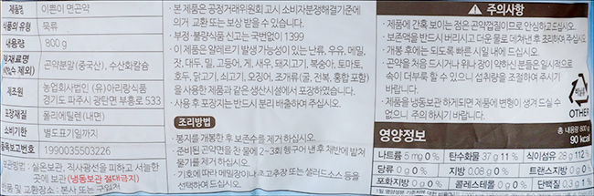 | 포장 단위별 내용물의 용량(중량), 수량, 크기 | 800g |