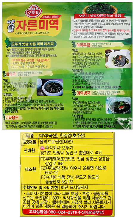 | 품명 및 모델명 | 옛날 자른 미역 |