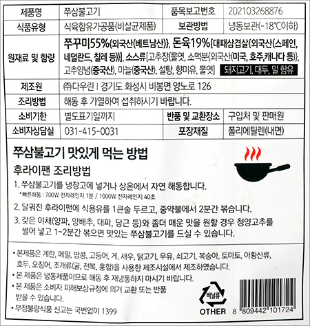 | 품명 및 모델명 | 쭈삼불고기 |