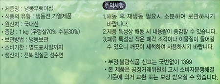 | 식품등의표시.광고에관한법률에 따른 소비자안전을 위한 주의사항 | 부정, 불량식품 신고는 국번없이 1399 |