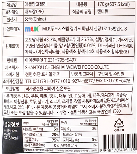 | 품명 및 모델명 | 애플망고맛젤리 |