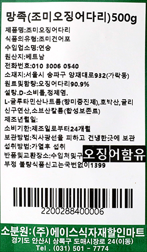 | 품명 및 모델명 | 망족(조미오징어다리) |