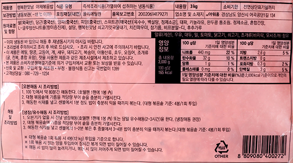 품명 및 모델명 행복한맛남 야채볶음밥