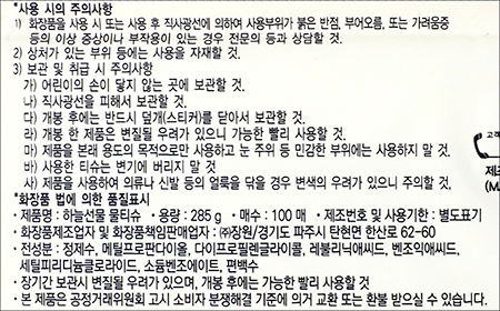 | 제조연월일/유통기한 | 각 상품별 입고일이 상이하여, 제조일과 유통기한이 다릅니다. ※ 해당 정보에 대한 문의는 고객센터(1566-6519)로 문의해주세요. |
