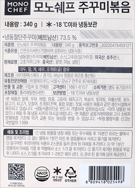 | 품명 및 모델명 | 모노쉐프 주꾸미볶음 |
