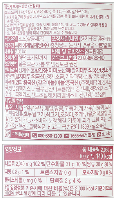 | 포장 단위별 내용물의 용량(중량), 수량, 크기 | 2.05kg |