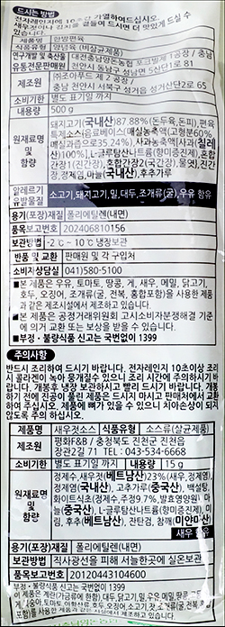 | 제조연월일, 소비기한 또는 품질유지기한 | 제조연월일로부터 45일까지 |