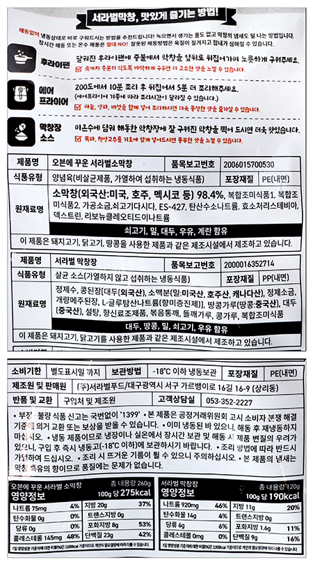 품명 및 모델명 오븐에 꾸운 서라벌 소막창
