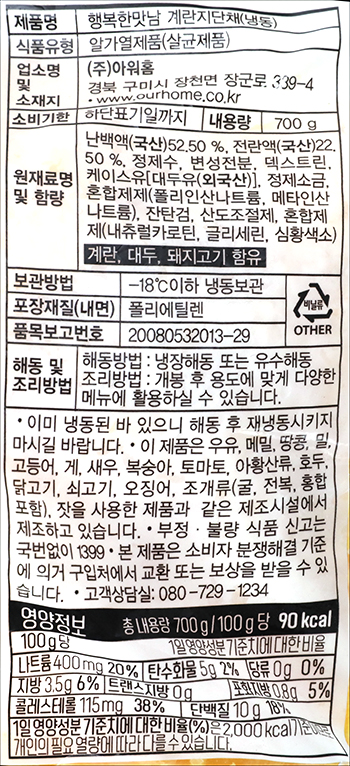 | 품명 및 모델명 | 행복한맛남 계란지단채(냉동) |