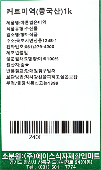 품명 및 모델명 커트미역