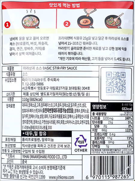 | 품명 및 모델명 | 마라샹궈 소스 |