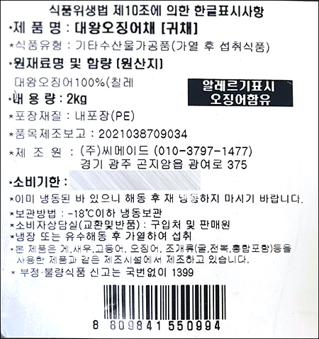 | 품명 및 모델명 | 대왕오징어채[귀채] |