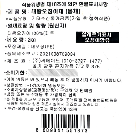 상품 구성 대왕오징어100%
