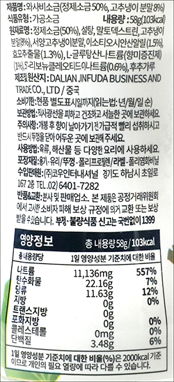 | 포장 단위별 내용물의 용량(중량), 수량, 크기 | 58g |