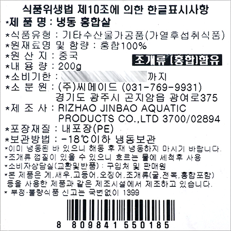| 상품 구성 | 홍합 100% |