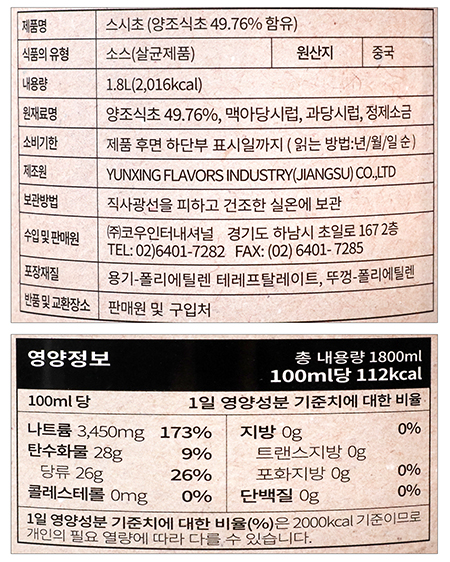 | 포장 단위별 내용물의 용량(중량), 수량, 크기 | 1.8L |